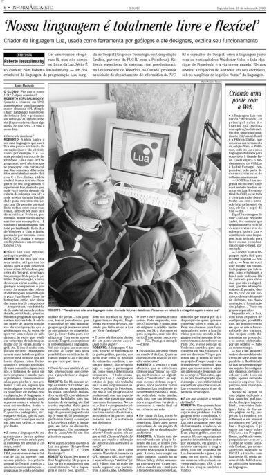Reprint from O Globo, Ano LXXVI Nº 24505, 02 Out 2000. Copyright © 2000 O Globo. Todos os direitos reservados.